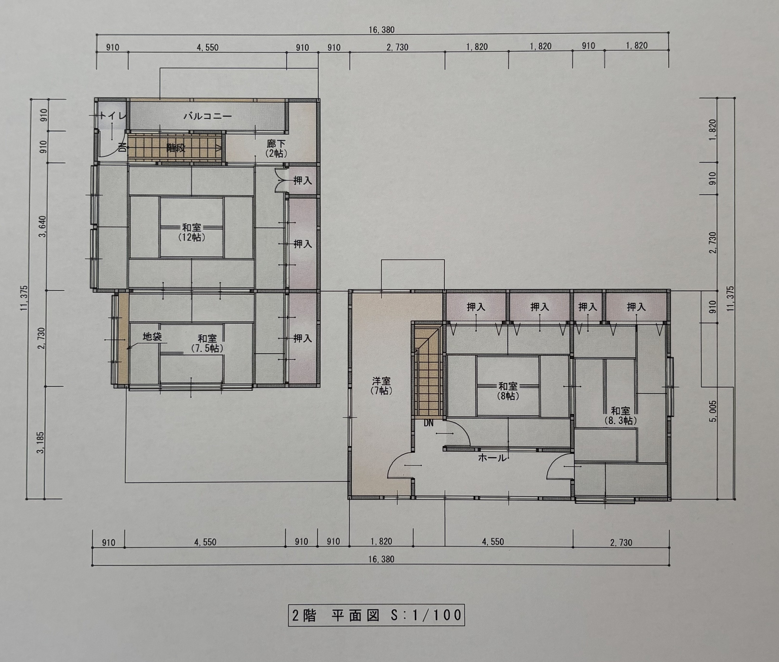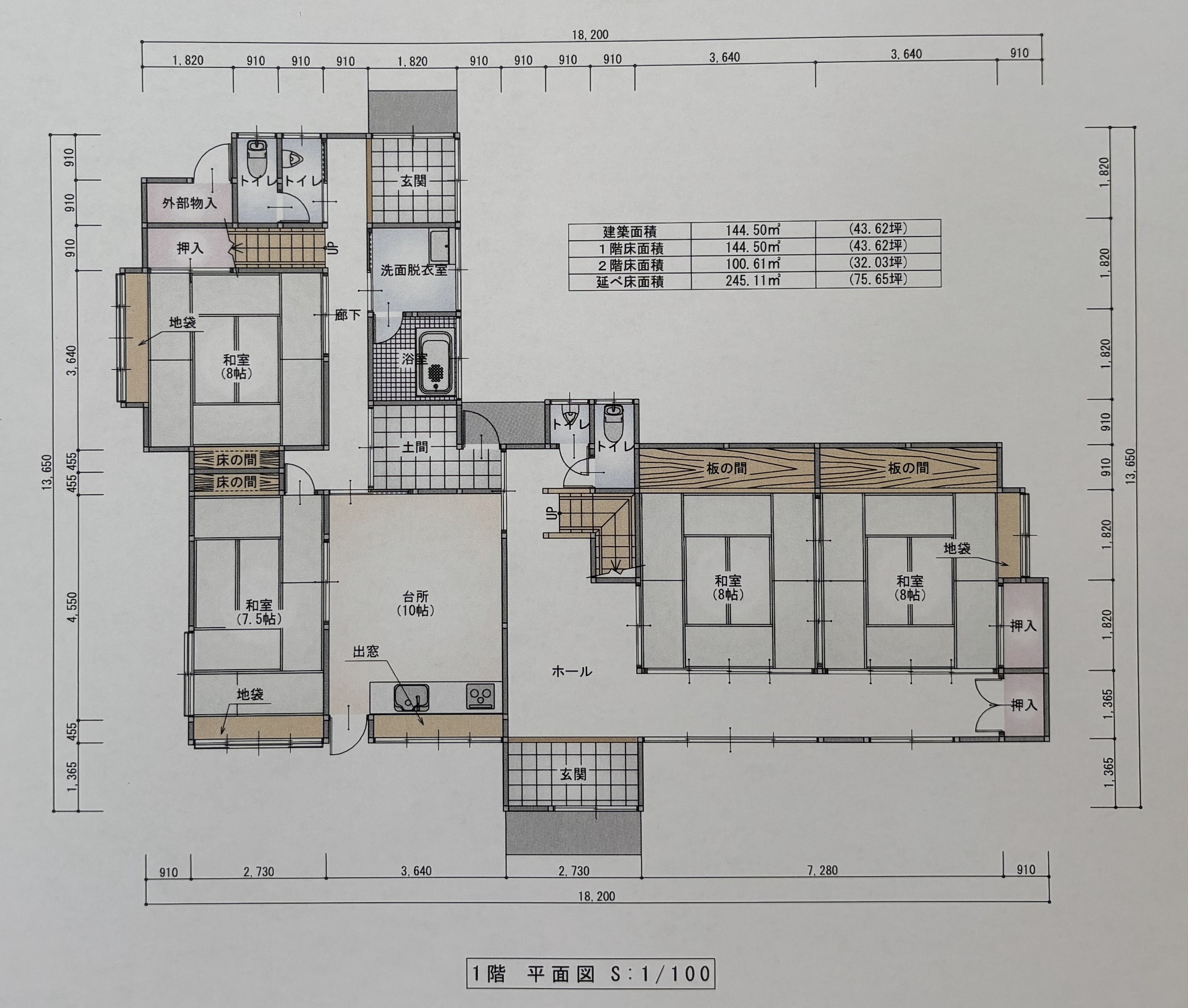 | 建物構造 | 木造軸組み工法亜鉛鋼板葺二階建 | 建物面積 | 243.84㎡(約73.7坪) |